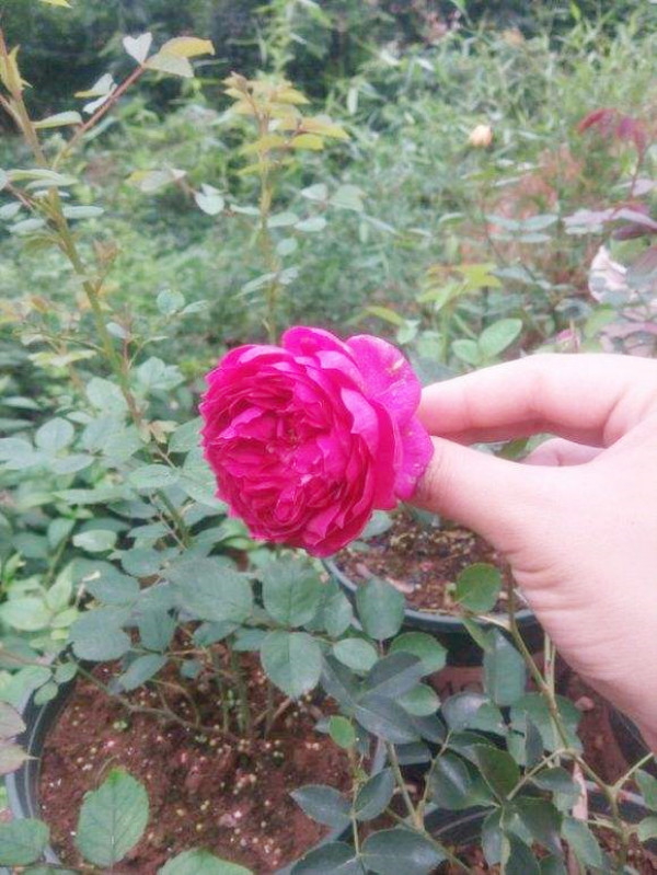 答:秋日胭脂,2013年育成于日本,是月季中的一個新品種,屬于薔薇科灌木植物,切花型園藝月季,不是藤本。秋日胭脂花大色艷,花型飽滿,花瓣整齊,直徑有成年人拳頭大小,色彩介于紅色與紫色之間,當切花瓶插,花瓣會變成紫色,這也是秋日胭脂驚艷眾人的一點。花香濃郁,有強烈的水果香味,花開一朵,滿室飄香。