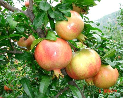 庭院石榴可采用單主干或多主干自然開心形樹形,整形方法與大田石榴相同,但要限制樹高和樹冠大小,骨干枝的數量也要相應減少,以適應庭院環境,和增加果實的數量質量。