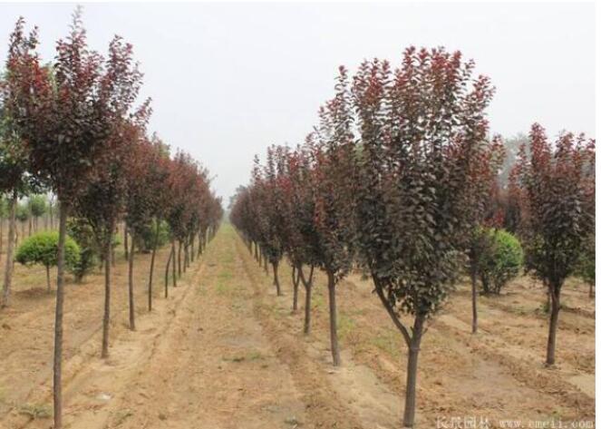 9公分紅葉李價格,江蘇沭陽9公分紅葉李280元一棵,哪里賣紅葉李,買紅葉李來江蘇沭陽。我基地紅葉李分枝點1.1~1.4,樹冠2.3米,開叉點統一,樹形端正優美,是園林綠化中一級苗木,查看更多請點擊→紅葉李價格。